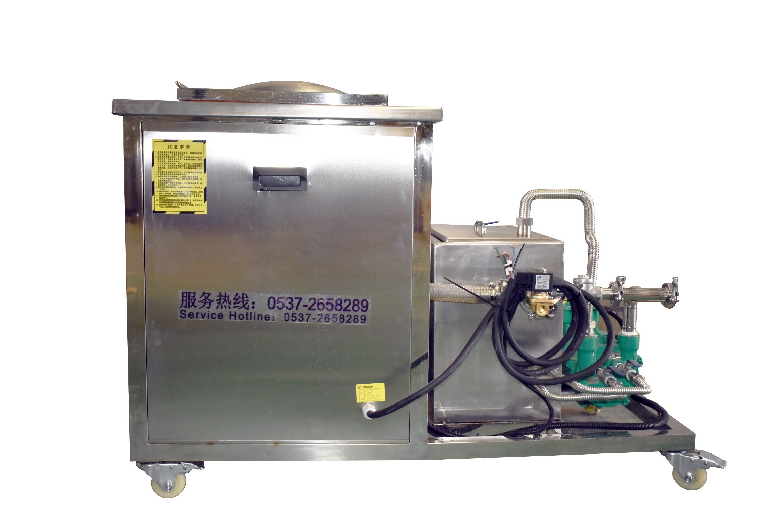 該設備為全自動高潔凈度清洗機,采用2%氫氧化鈉溶液以及純水清洗、超聲波清洗、噴淋清洗工藝。整機為半封閉式結構,主要動力源為動力輸送裝置,PLC自動控制。該設備共有六個工位:與上工序接料對接工位、超聲波清洗工位、噴淋漂洗工位1、噴淋漂洗工位2、高壓風切工位、動力滾筒對接收料工位。該設備清洗效果好,提高了此類工件的潔凈度。該機構設計及工藝安排合理、自動化程度高、清洗精度高,有效的解決了此類工件的清洗難題。